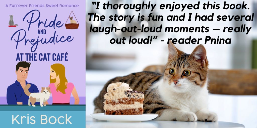 Kris Bock writes romance, mystery, and suspense. Her Furrever Friends Sweet Romance series features the employees and customers at a cat café. Watch as they fall in love with each other and shelter cats. In the Accidental Billionaire Cowboys series, a Texas ranching family wins a billion-dollar lottery. Can they build new dreams and find love amidst the chaos? In the Accidental Detective humorous mystery series, a witty journalist solves mysteries in Arizona and tackles the challenges of turning fifty. Learn more at KrisBock.com. Get a free 30-page story set in the world of the Furrever Friends cat café when you sign up for Kris Bock’s Romance and Mystery newsletter. You’ll also get a printable copy of “22 recipes from the cat café” and a free Accidental Detective mystery short story with bonus material.